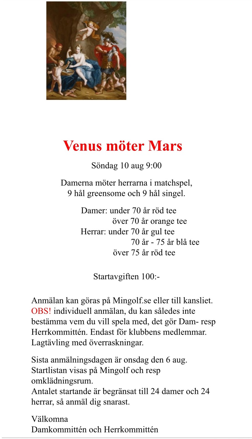 Som tidigare med handicap singel och lag (poäng) samt texas-scramble sista tisdagen i månaden(slaggolf).