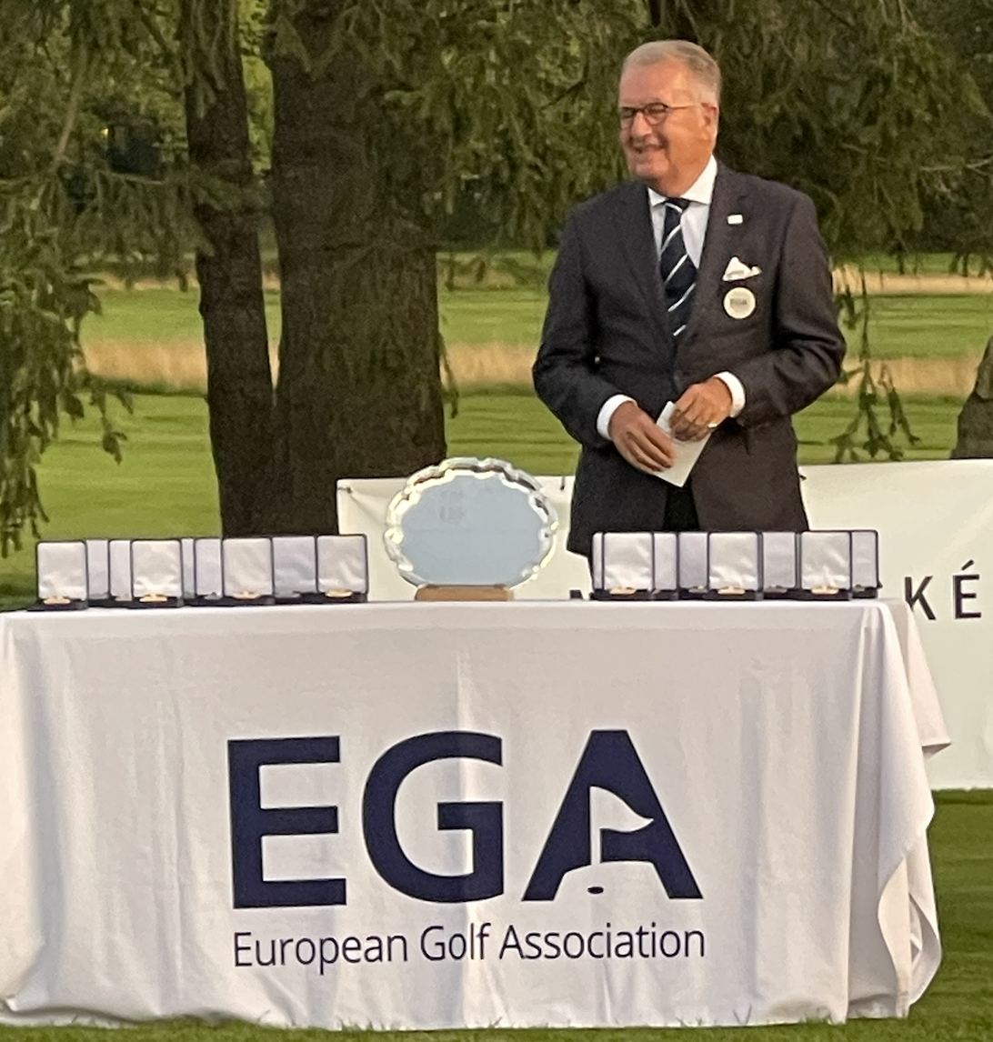 Precis som vid invigningen var det en pampig avslutningsceremoni med middag och inmarsch. Alla nationer tågar in med sina lag i parad och presenteras i placeringsordning. Borgmästaren, det Tjeckiska golfförbundet är på plats och tillsammans med EGA håller de avslutningstal och tackar alla för en fantastisk vecka. Vi har alla fått nya vänner för livet och upplevt sportsmanship på hög nivå. Spelat en fin golfbana (108 år gammal), och upplevt en härlig gemenskap med tävlingsnerver och allt.